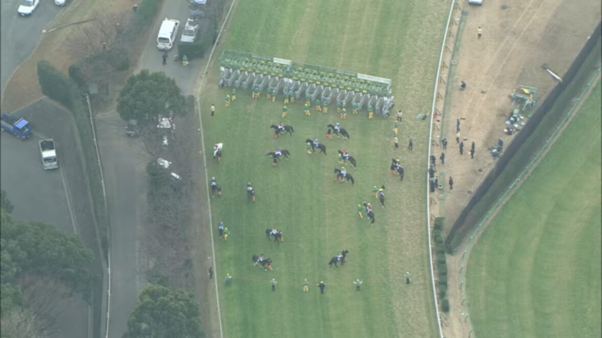 奥の方に見えるコーナーまでにポジション争い終わらせて内に入れないと後に響くってのが有馬記念での外枠に難しさなんだよな