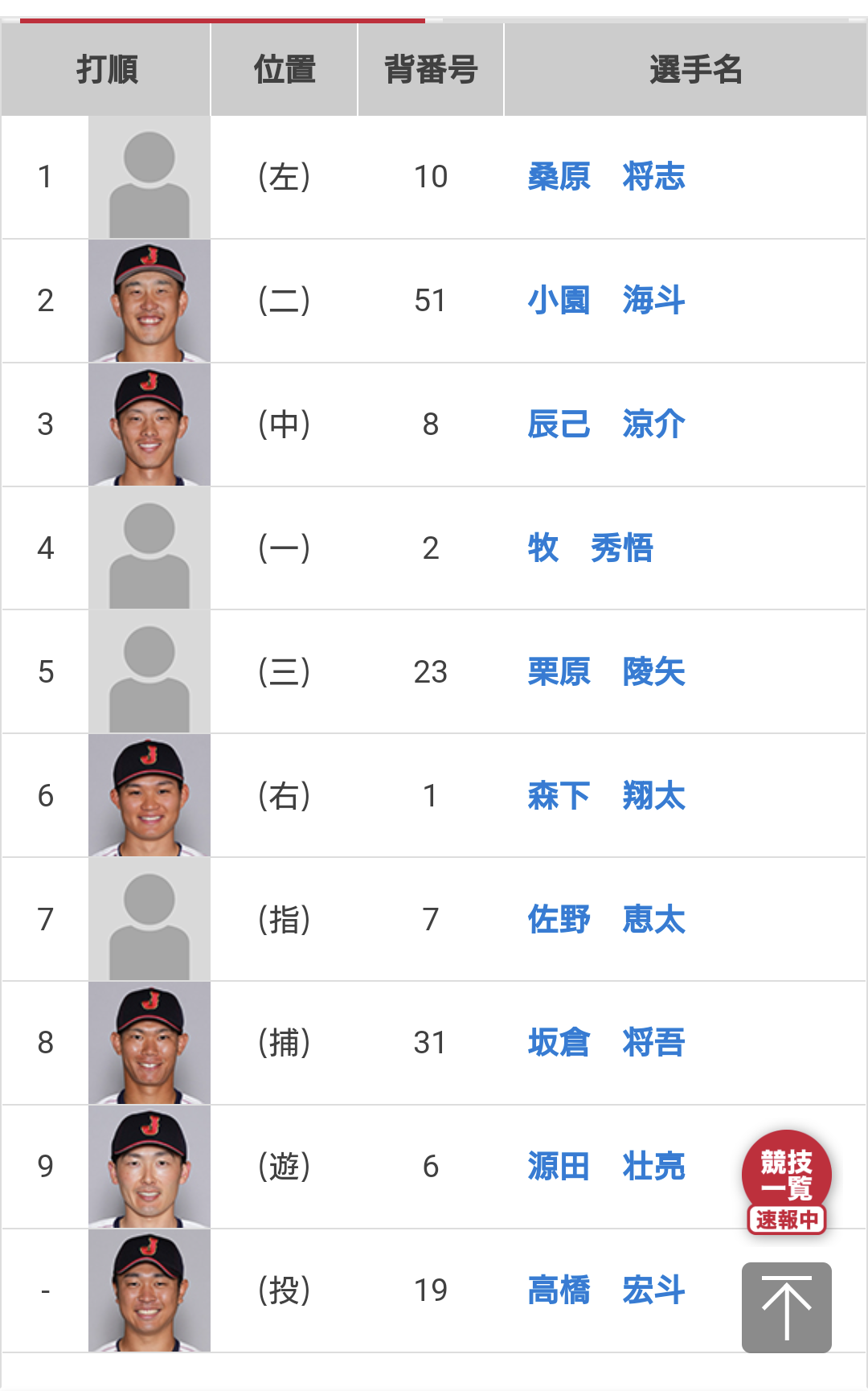サード紅林、キャッチャー古賀、レフト清宮、ファースト坂倉に変更されましたか