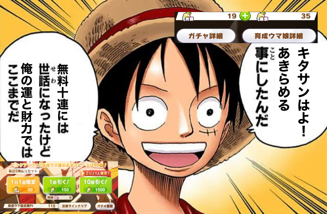 そこまで引いたならもう課金して天井しようぜ麦わら屋