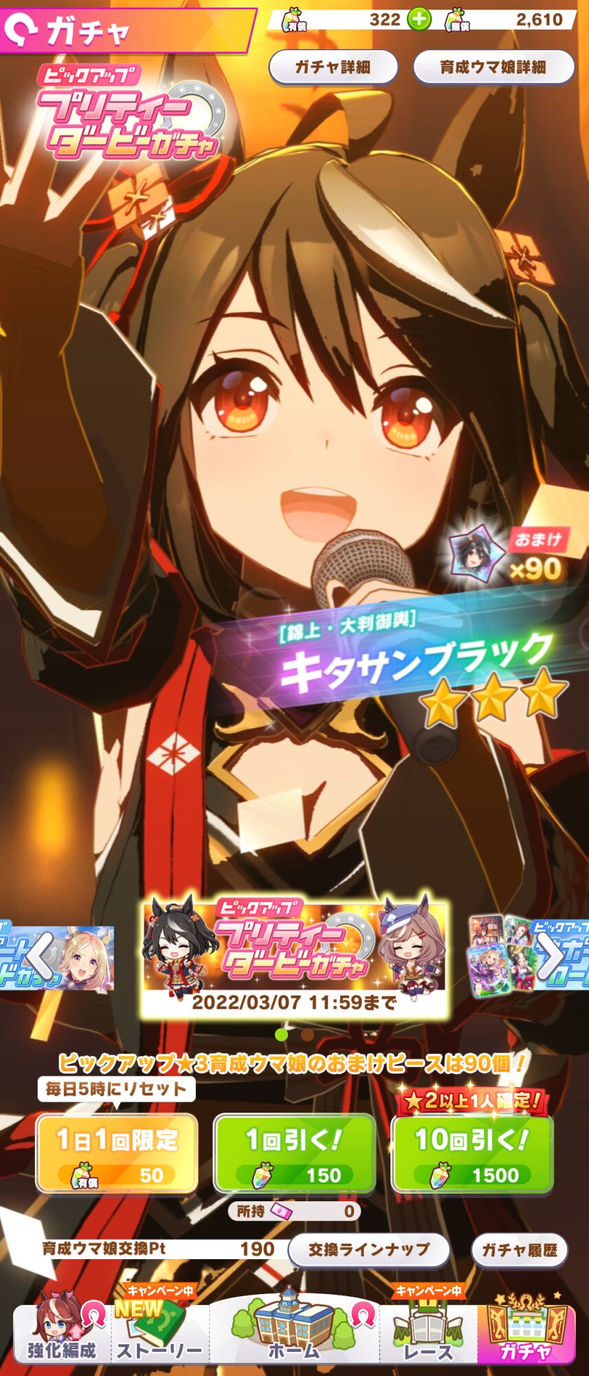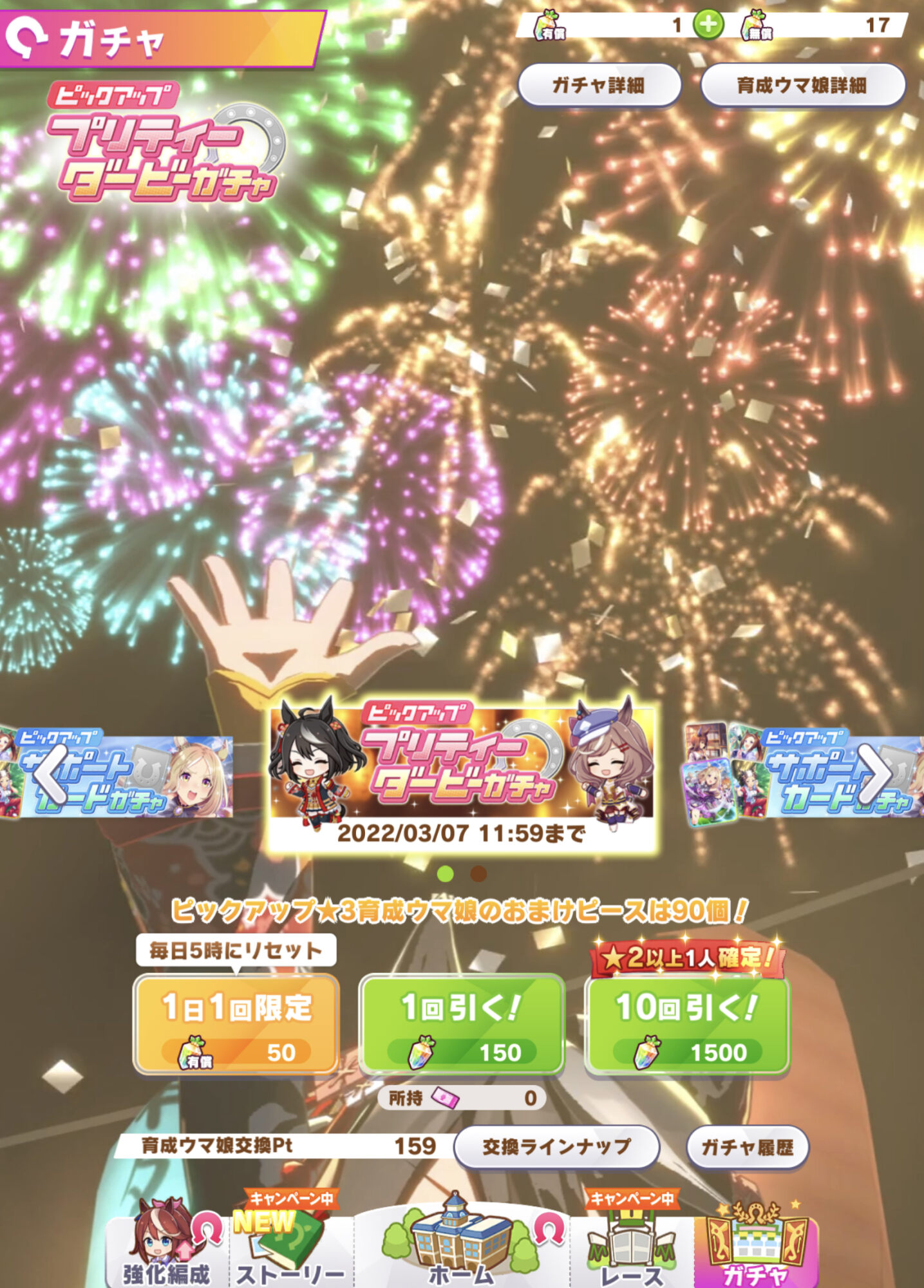 キタちゃんは引けなかったけどマチタンの勝負服解放までいけたから御の字
