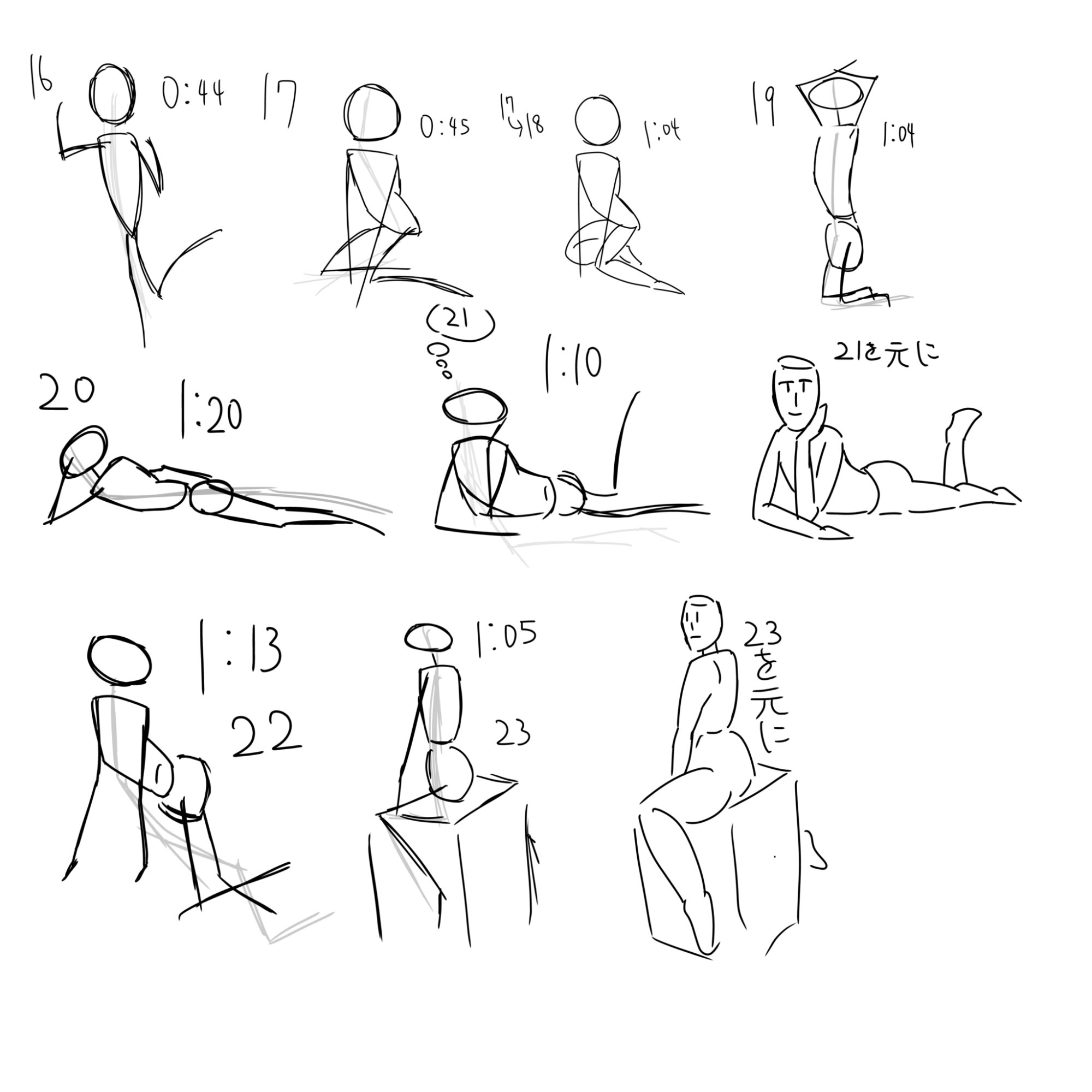 全身を単純化して捉えて短時間で描き切る練習法なんだけど、これやると資料がなくても自由に描けるようになってくる