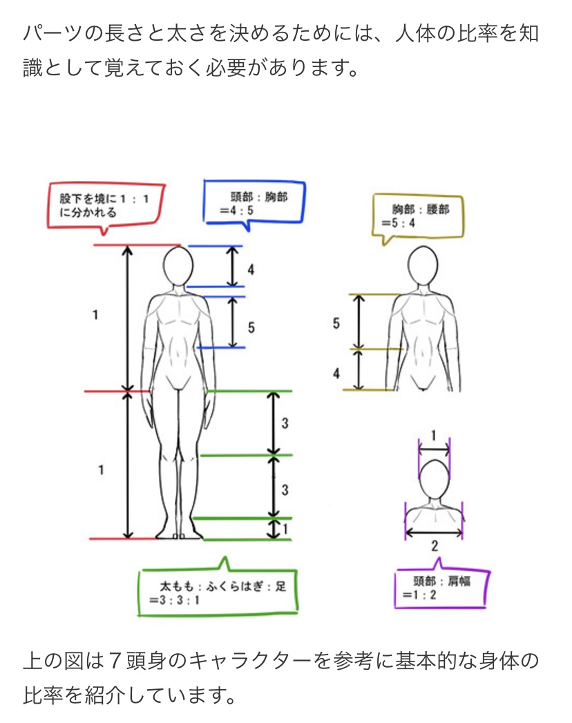 この比率がずれると印象が変化して頭が大きいとか脚が長すぎるという現象が起きるよ