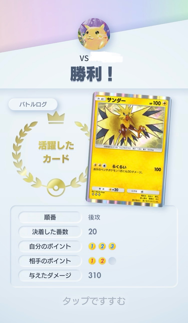 逆に先手だと4エネ技打つ前にピカチュウに2回殴られるから、バトル場のミュウツーは捨ててベンチで次のミュウツー育てて2連打で吹っ飛ばしたいっス