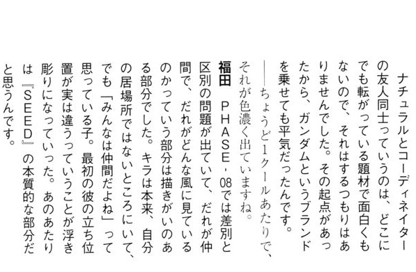 またSEEDの世界のキャラは、一部を除き皆無意識に差別意識を持ってるとファンブックで書いてあった事で
