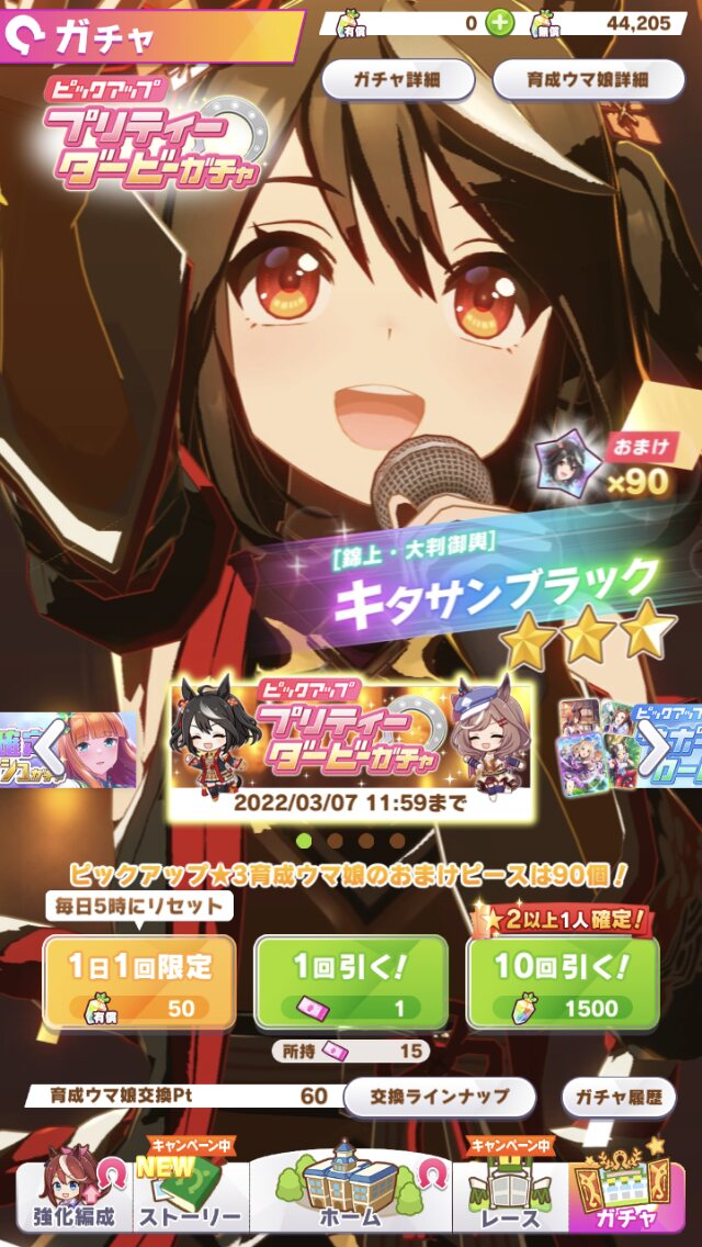 私も今回の無料10連では星三はキタサンしか引けませんでした!