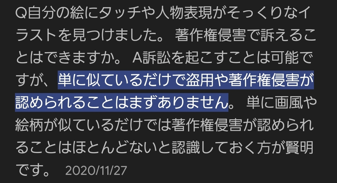 「明らかな絵の類似性」を現状証明する手段がない