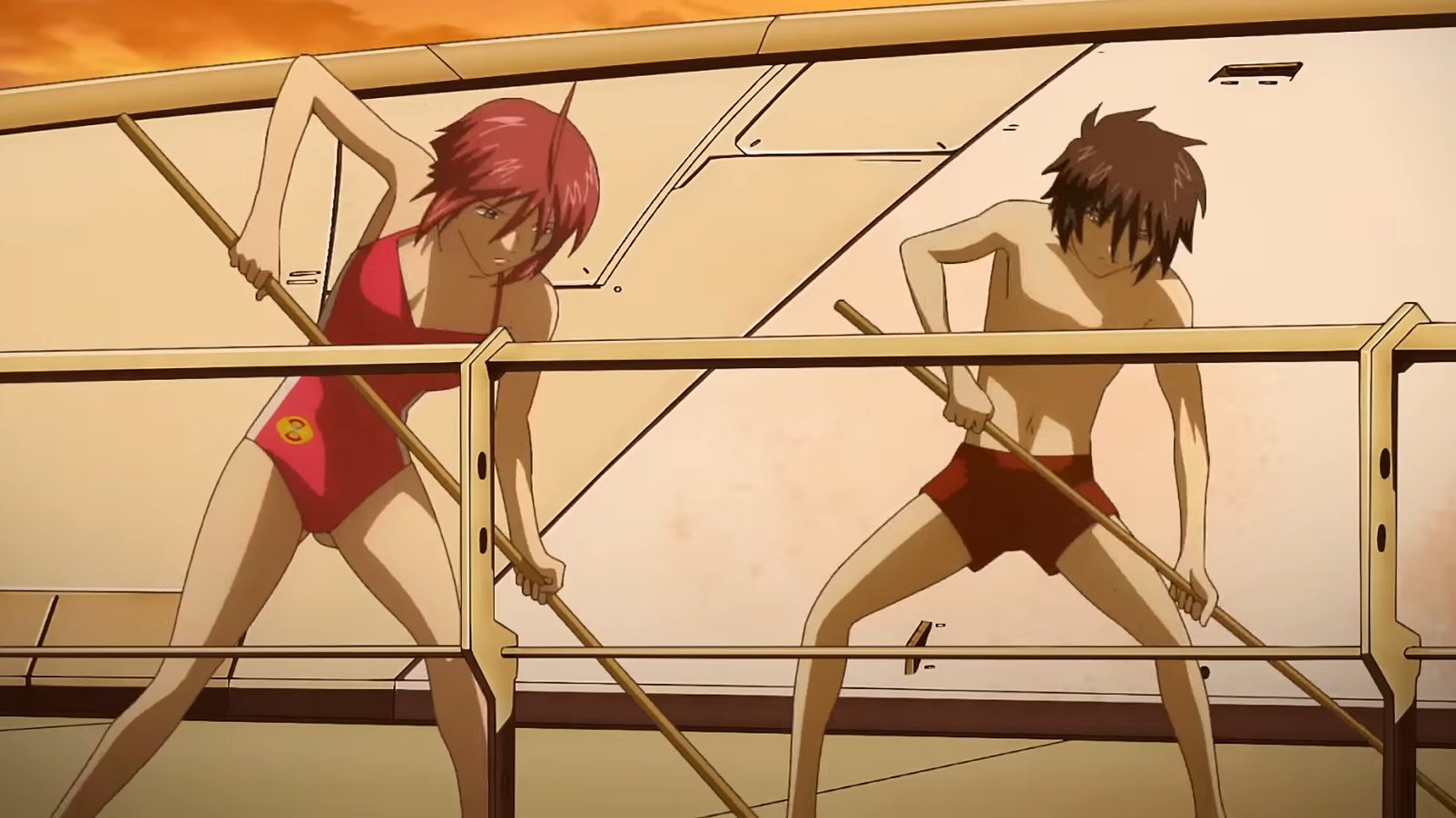 ストフリとギャンが戦闘してる所を見たがビームサーベルの色がオレンジ色になってたって事は模擬戦してる所の映像って事かな。