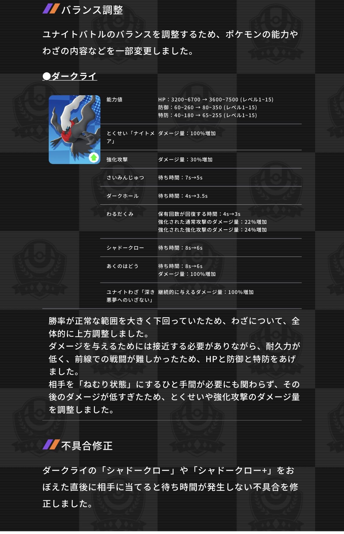・ダークライ、史上初緊急強化