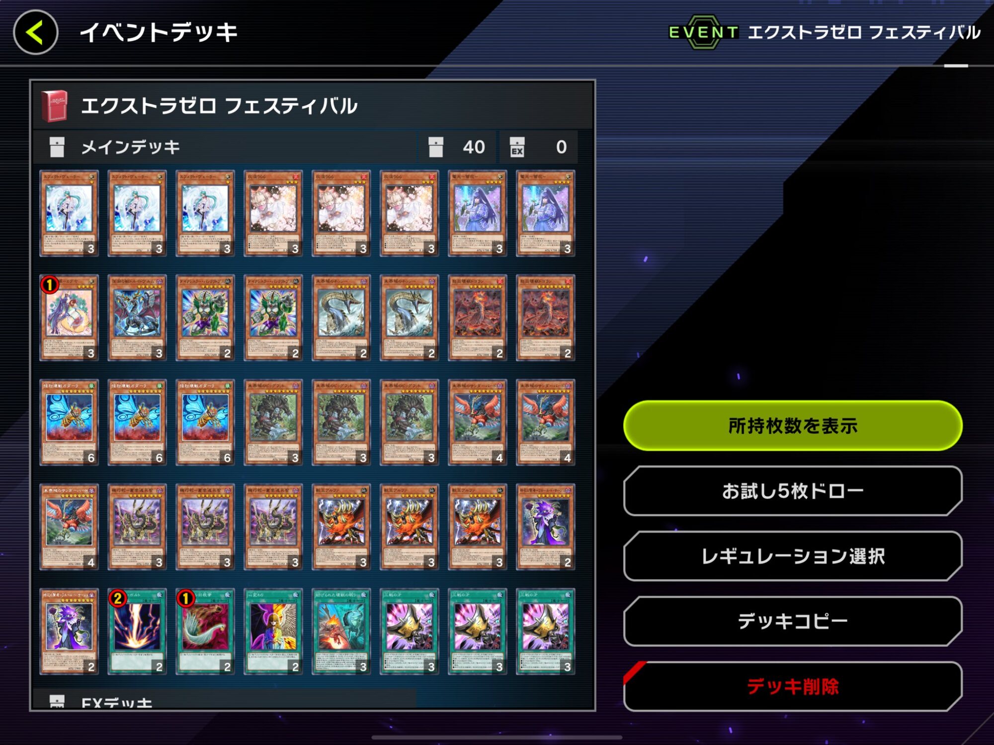 自分の場合、新デッキ組みたさもあってエルドリッチ系にCPゴリゴリに使いまくった上でEX0フェス用に調整した形だけど、真っ当に戦うことなくパリンパリンされると、デッキの改善点が見つからねえから地味に困るでござる。