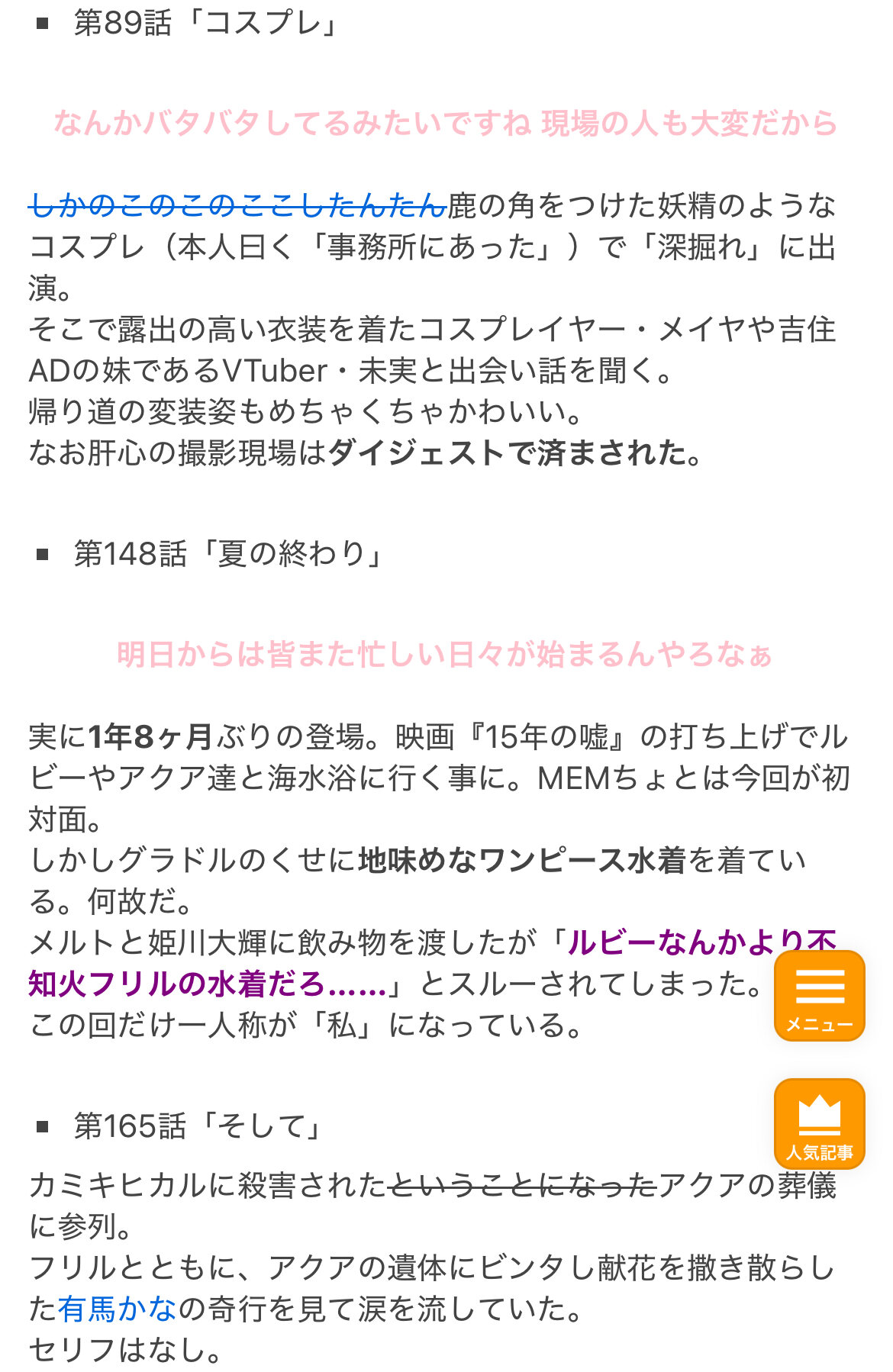 主要キャラほぼ全員アクかな匂わせに使われてたのに、アクア死亡ヒロインレース投げ捨て展開にしたせいで、重曹劇場の能力で認識改変されてた被害者達みたいになってて草