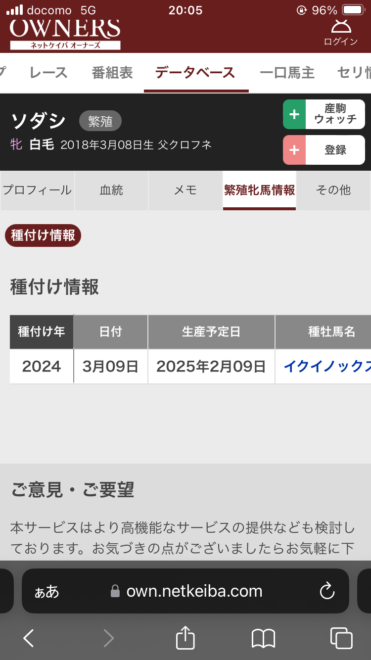 ネトケ修正されてソダシの種付け情報見れなくなったっぽいぞ