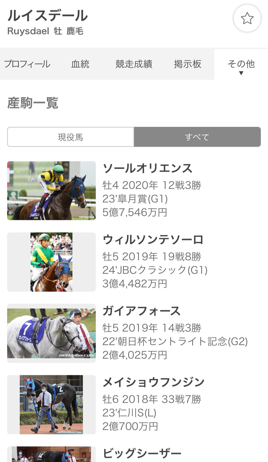 なんだかわからんが6頭の種牡馬に現役馬が紐づけられてるな