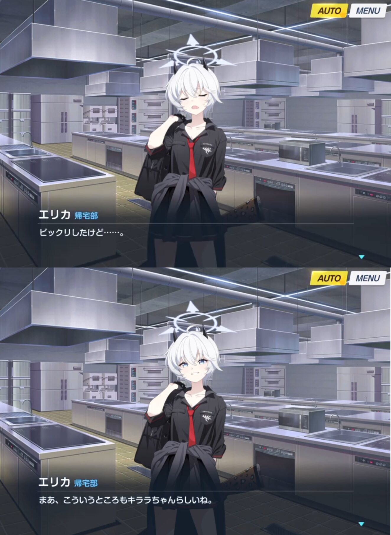 小夜曲イベントのパーティ開催を聞いてみんなが盛り上がる中、ちょっとだけもやもやした様子のキララを見抜いて「制服でいいらしいし、マナーコードも無いってさ」と振るエリカですか(今でもトリニティの杵柄はあるが、そもそもミスれば聞こえよがしに嗤われる環境を思い出すシチュエーション自体が気後れしている)