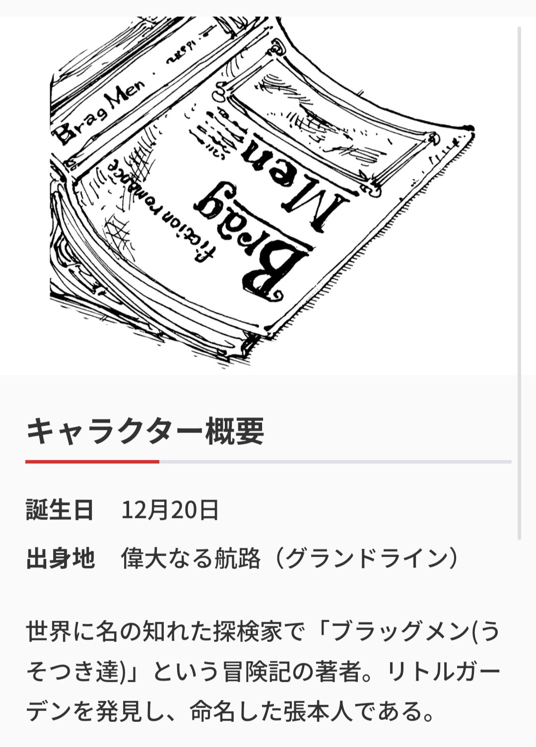 「著書には『ブラッグメン(うそつき達)』という冒険記があり、」 → 「『ブラッグメン(うそつき達)』という本にも彼の冒険記は収録されており、」っていう修正が入ってるから