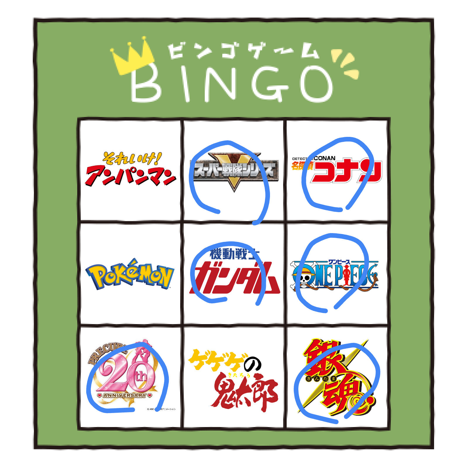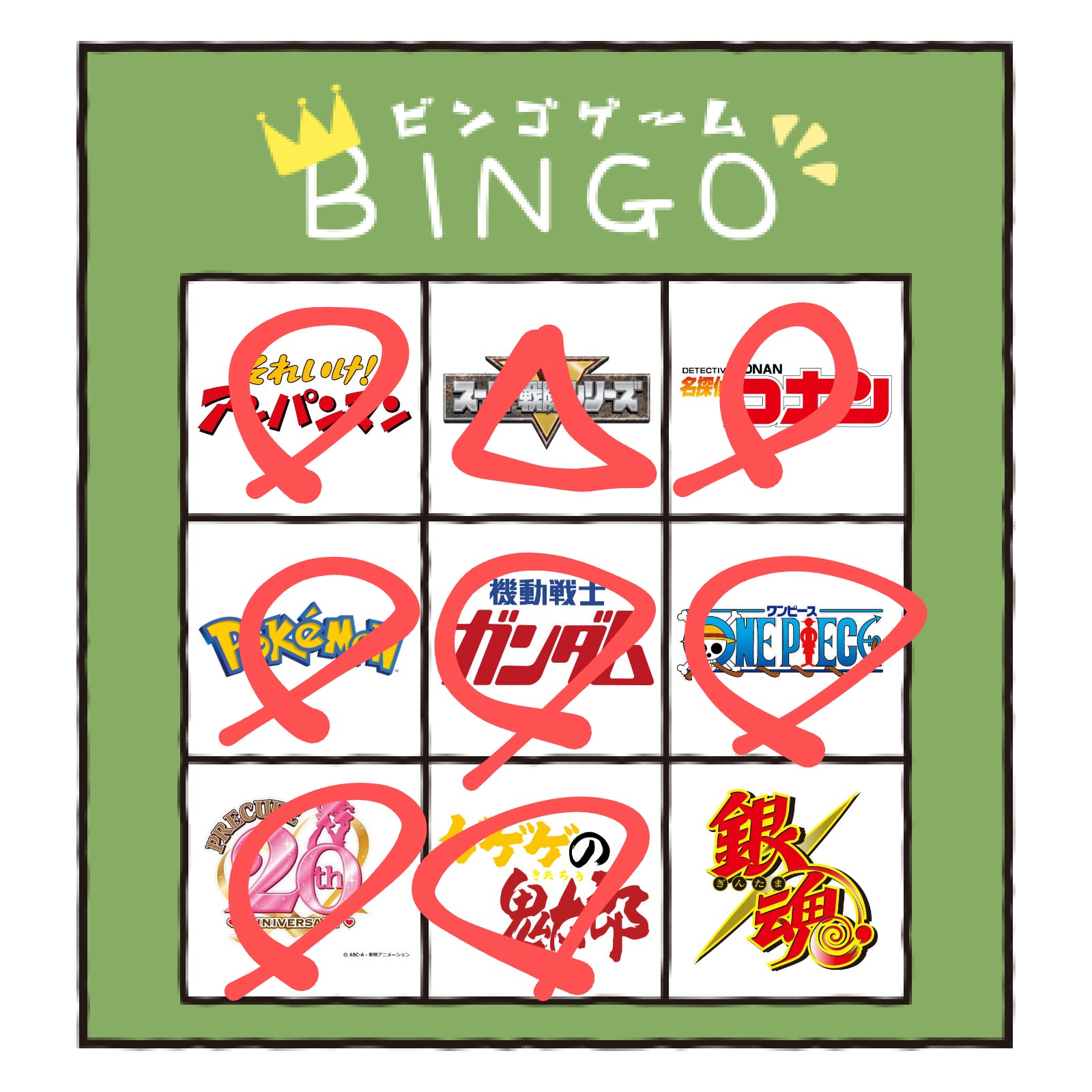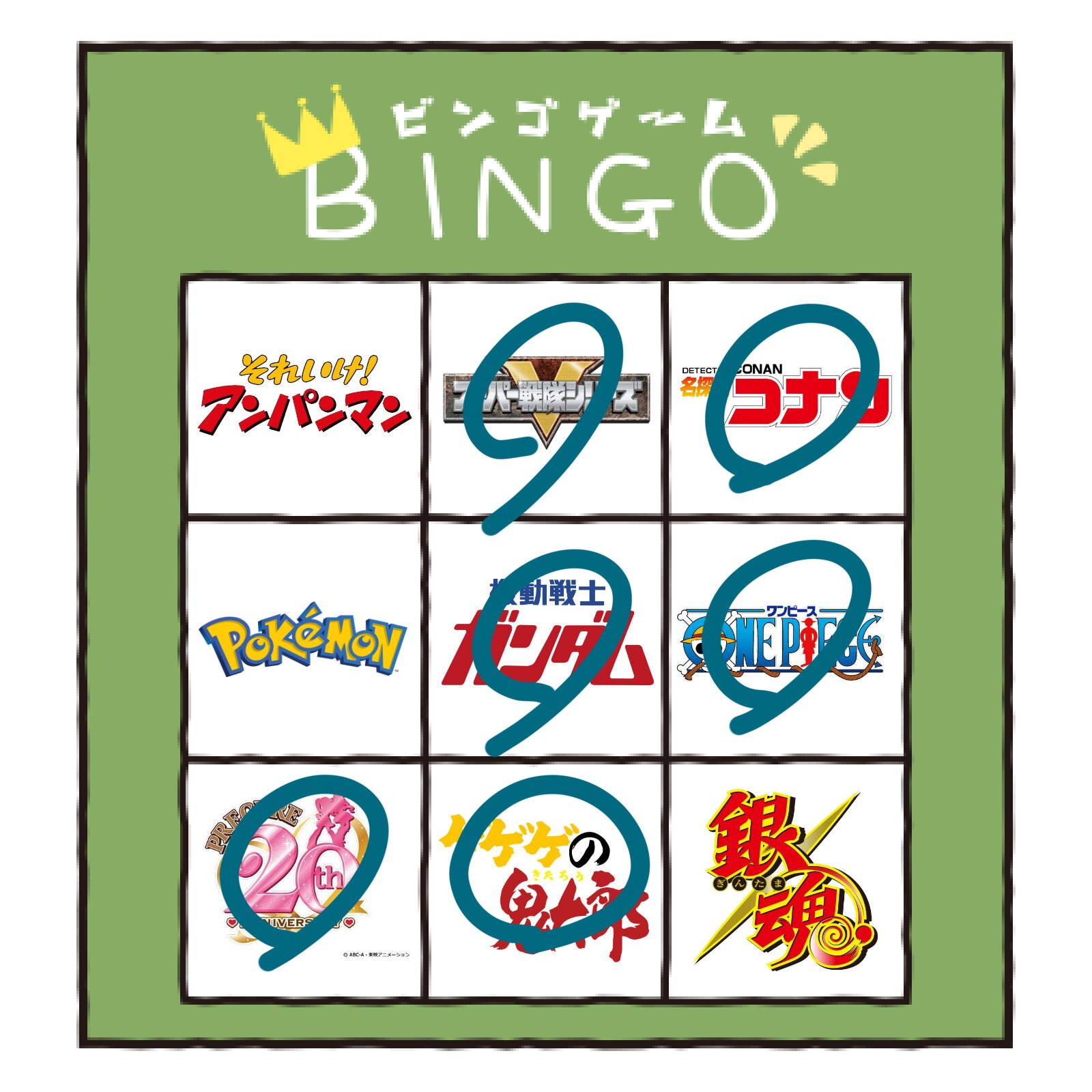 項目にジョジョが入ってたらどっかがリーチないしビンゴで揃っていたかもしれんな