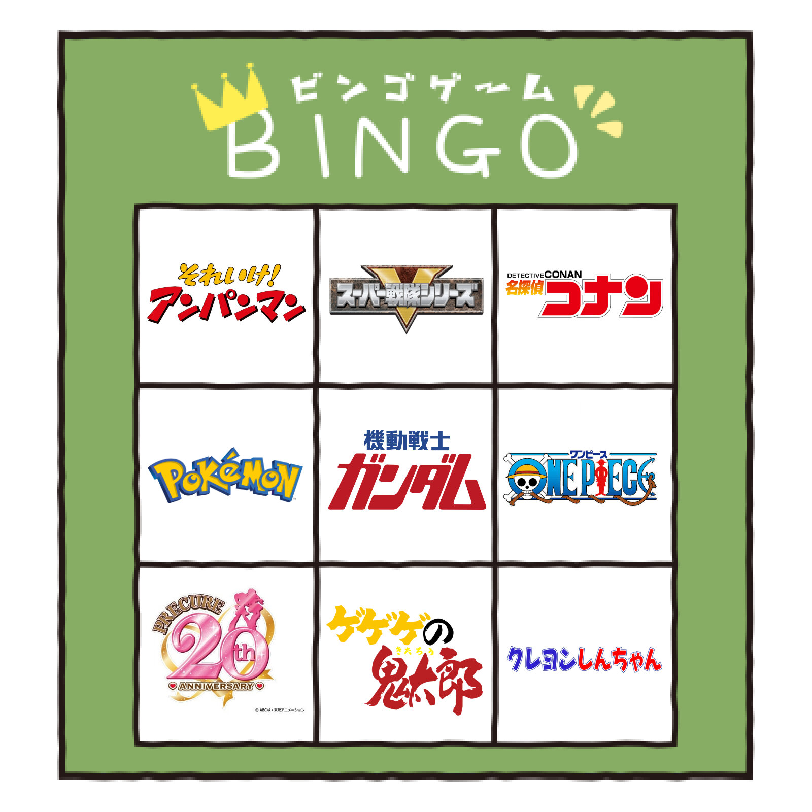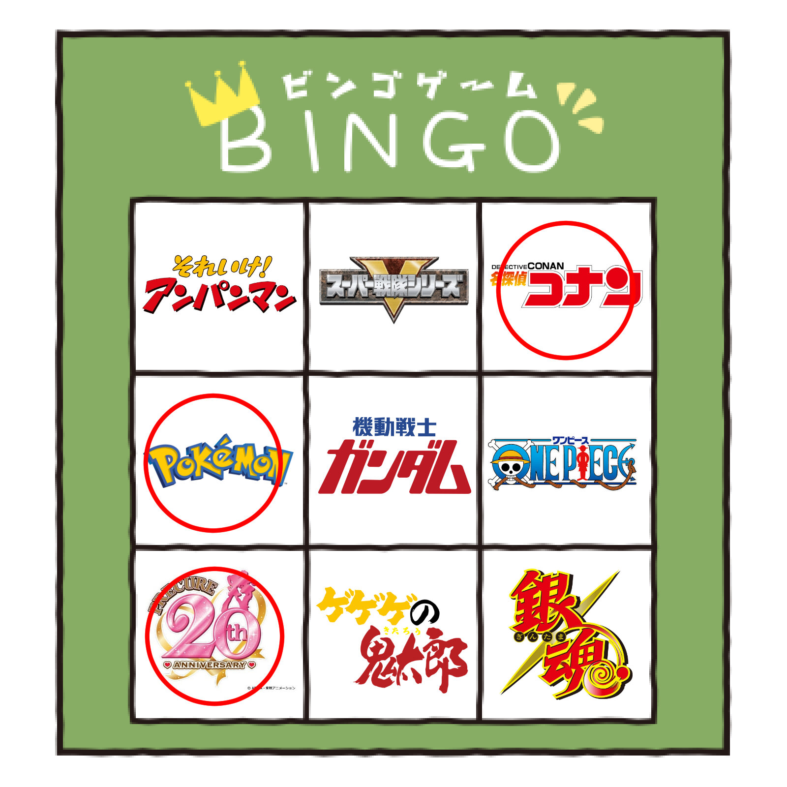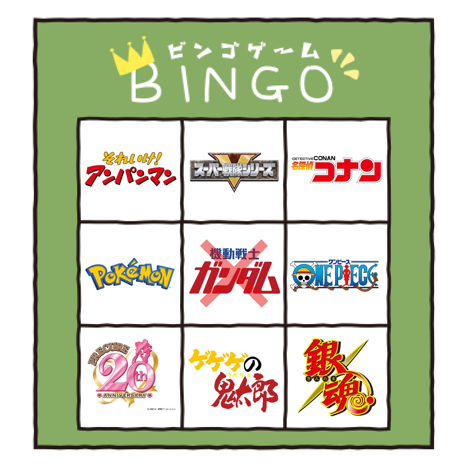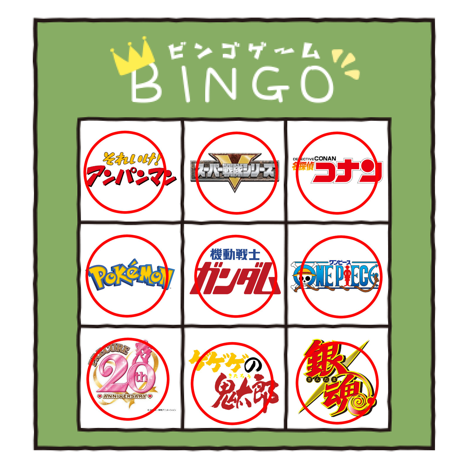 項目にジョジョが入ってたらどっかがリーチないしビンゴで揃っていたかもしれんな