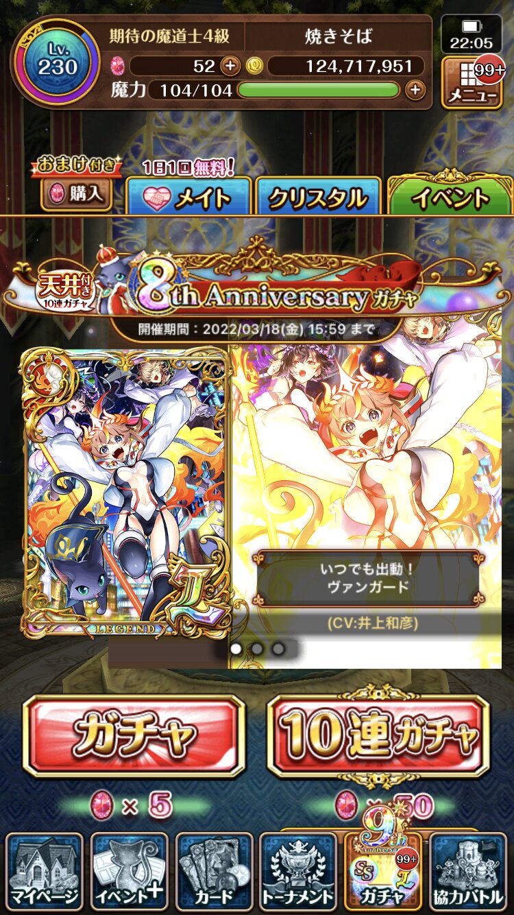 そもそもこの後サマコレにアレスちゃん主役イベにGAに盛りだくさんだから石が………石が足りない………!!キャラプレは案の定枠が足りない。でも確定ガチャでキャラプレ候補引く予定だから………。気が早いけど10周年も楽しみです。