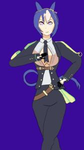レオタードベースの王道衣装、髪色水色
