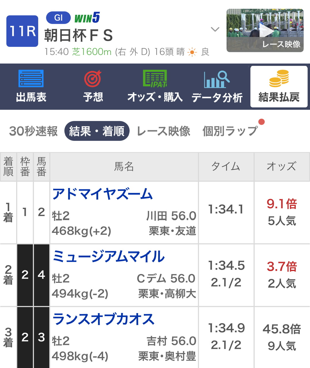 もしかして今日の朝日杯わりと荒れた方?