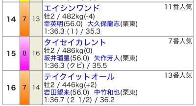 2R3着シュガーハイ15人気