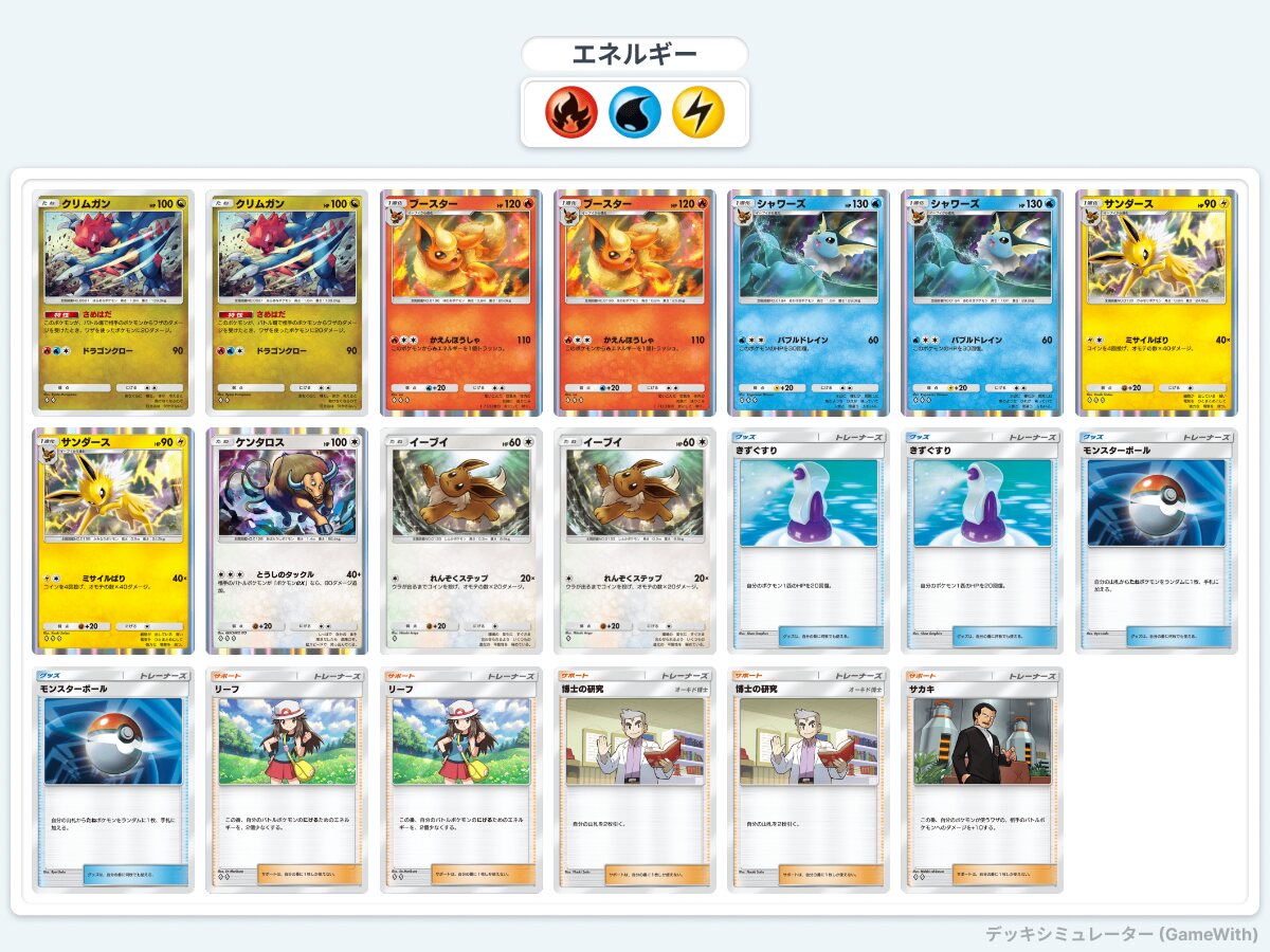 使ってみたけどミュウ1枚に減らして代わりにリーフもう一枚採用しても強いかも