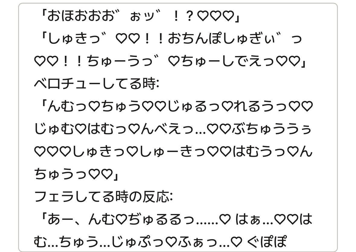 …で()で指定しなかったばかりに擬音とセリフが混ざって語尾にハートマーク付きのワリオみたいな叫び声を上げさせてしまったのが俺…!!