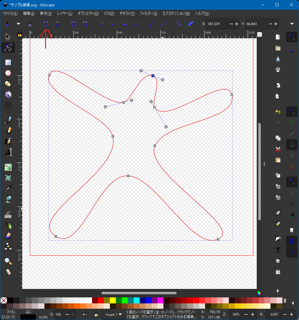 Inkscape の良いところは1回描いたキリで終わらず、