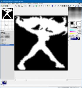 続けてこちら元画像のアルファチャンネルを一旦削除して、白かった背景を真っ黒に塗ったもん
