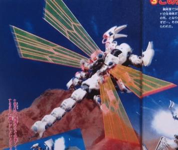 後、ミネ団長のゴールドライガーは原作から打倒デスザウラー目指していたシールド改造機が仲間を庇って荷電粒子砲の直撃を受けた時に謎の現象で新生した不思議な存在になる。