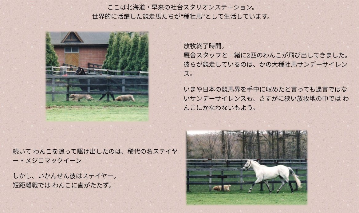 放牧地がSS、マック、テイオーと並んでたのが面白すぎる