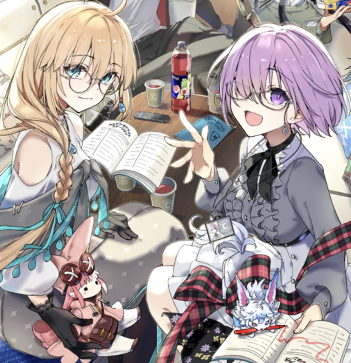 桃色がかった薄紫の髪、グラビアアイドルも目指せるであろう身体とその親しみやすい雰囲気と礼儀正しい態度で大学入学式以降話す男子学生ほぼ全員に邪な思いを抱かせているマシュ。留学してきてからずっと高嶺の花オブ高嶺の花な金髪超絶美少女として勇気を出して誘いをかける誰にも靡かず神々しさすらたまに漂わせるトネリコ。