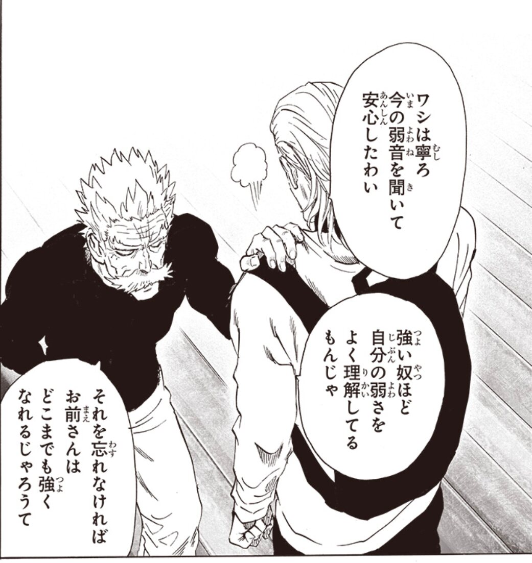 アマイ、無免ライダーと並んでハゲが強さ関係なく敬意払ってるしジェノス除いたら一番オフでも付き合ってるから対等感があるんだよね
