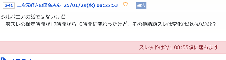 一般スレの保守時間が12時間から10時間に変わったけど、その他話題スレは変化はないのかな? - 42二次元好きの匿名さん25/01/29(水) 11:58:02