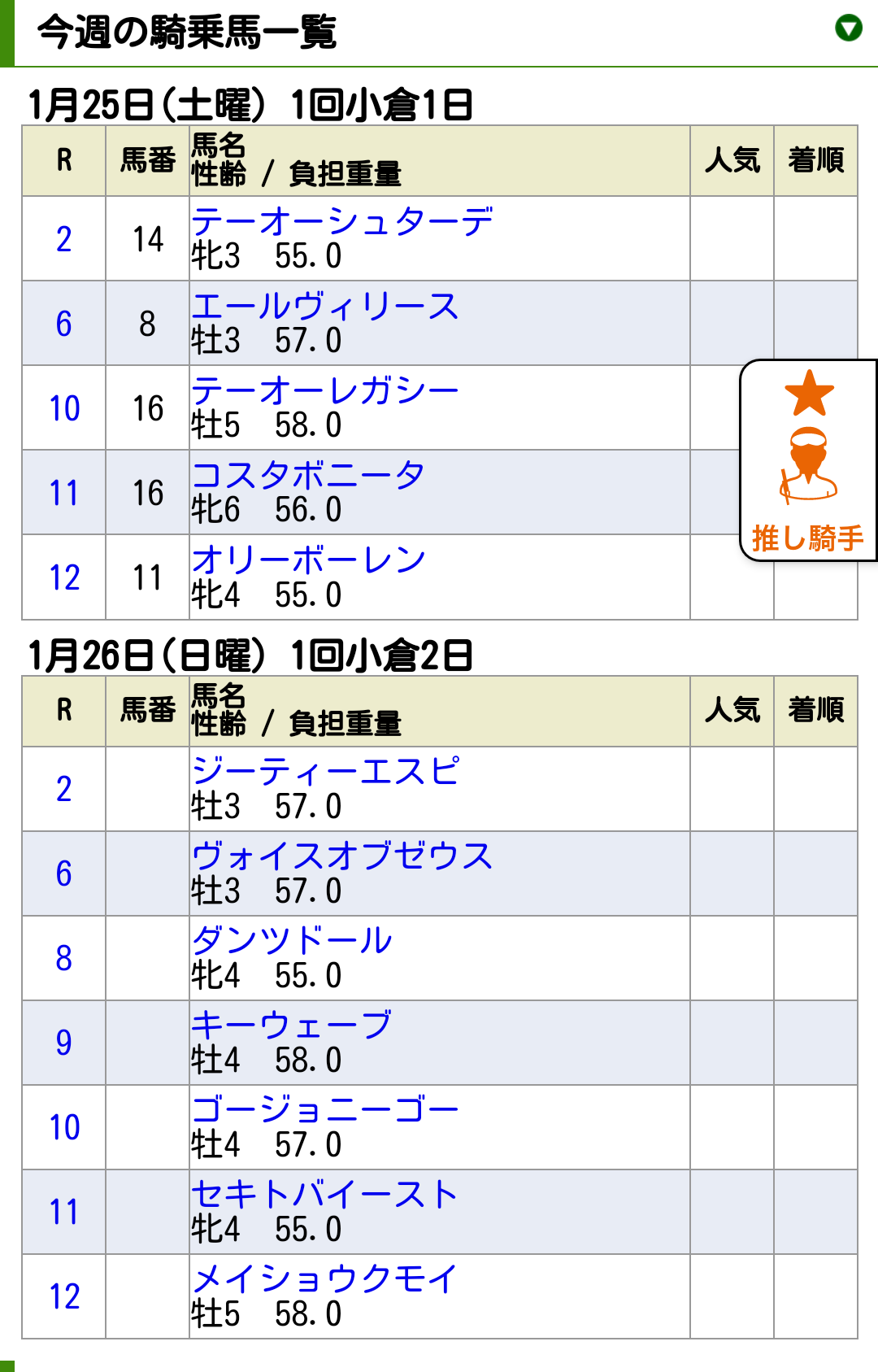 これからはオープン馬なら次走報決まったらもすぐ確認できるかな