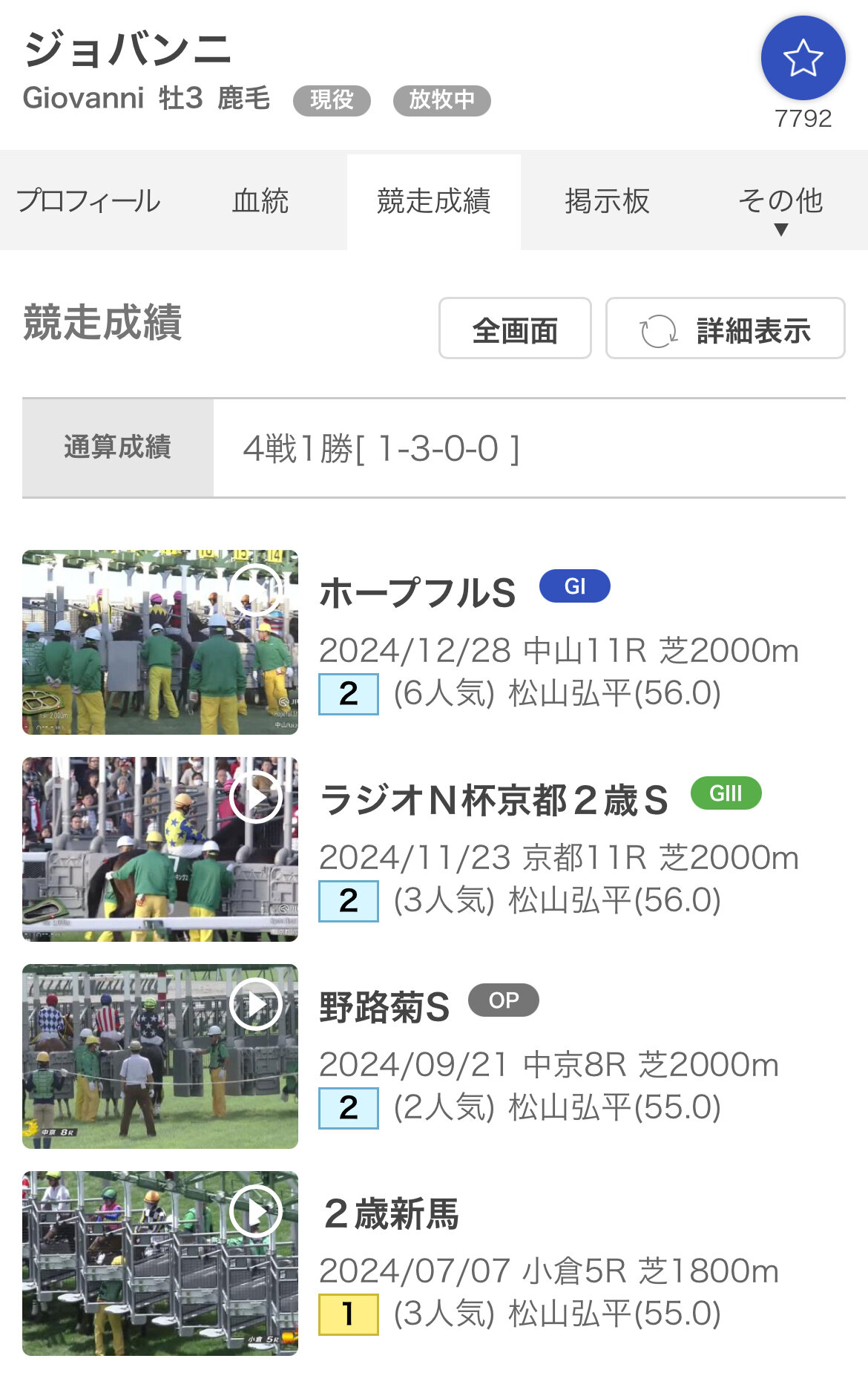 シェケッとした勝負服だなと思ったらジョバンニだった
