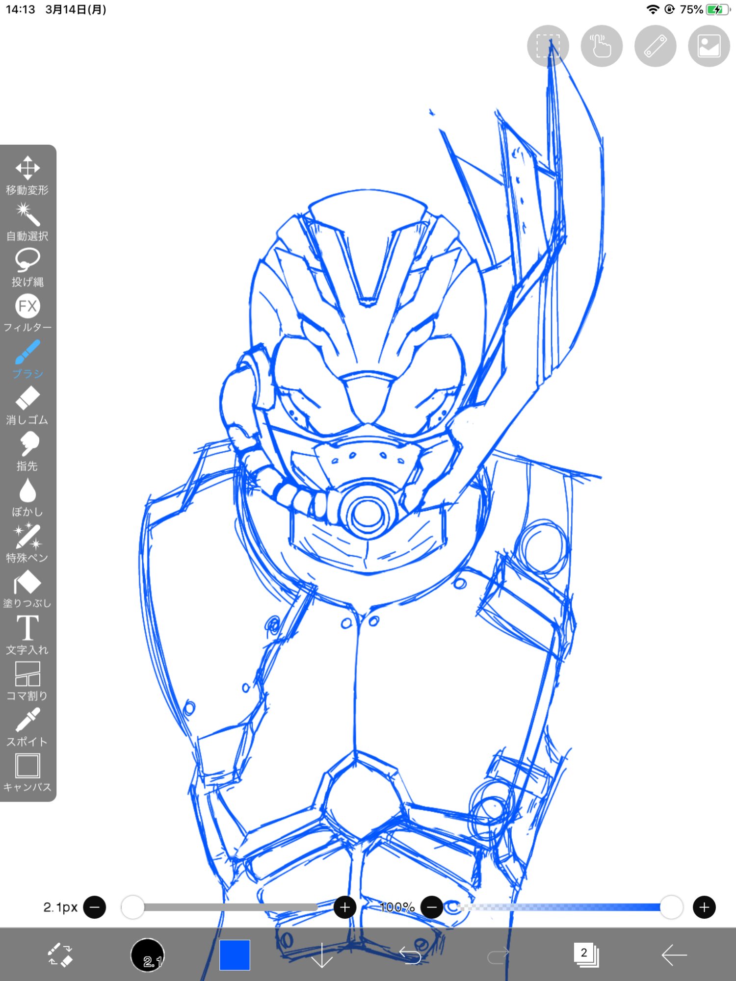 実はマスクのツノ、チューブ以外線対称で描いてる。