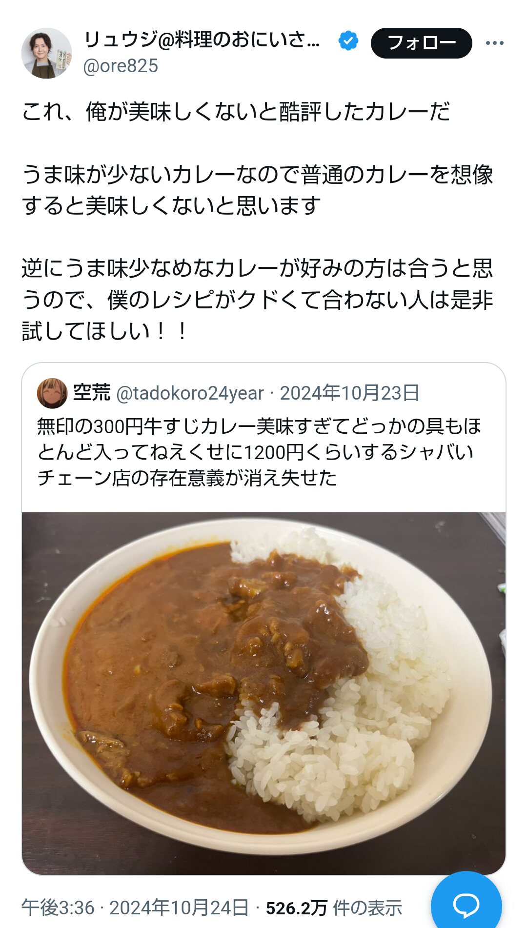 カレーをうまいと喜んでるやつにこのリプはマジで頭おかしいんじゃねぇかと思うんだ