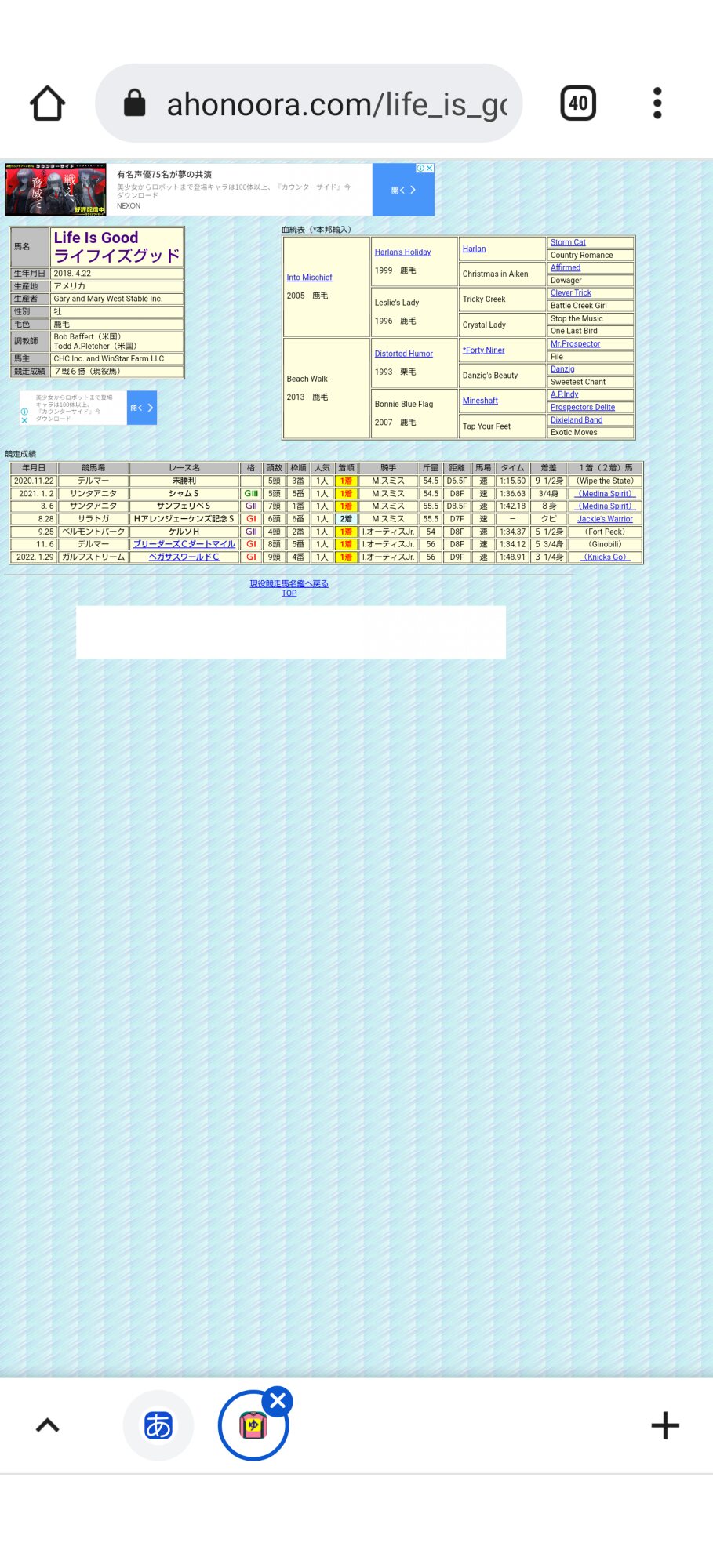 ミシュリフ出ないだろうし、アメリカの主要なダート古馬が引退しまくったし、ペガサスWCでニックスゴーに圧勝したライフイズグッドがまあ一強だろうね