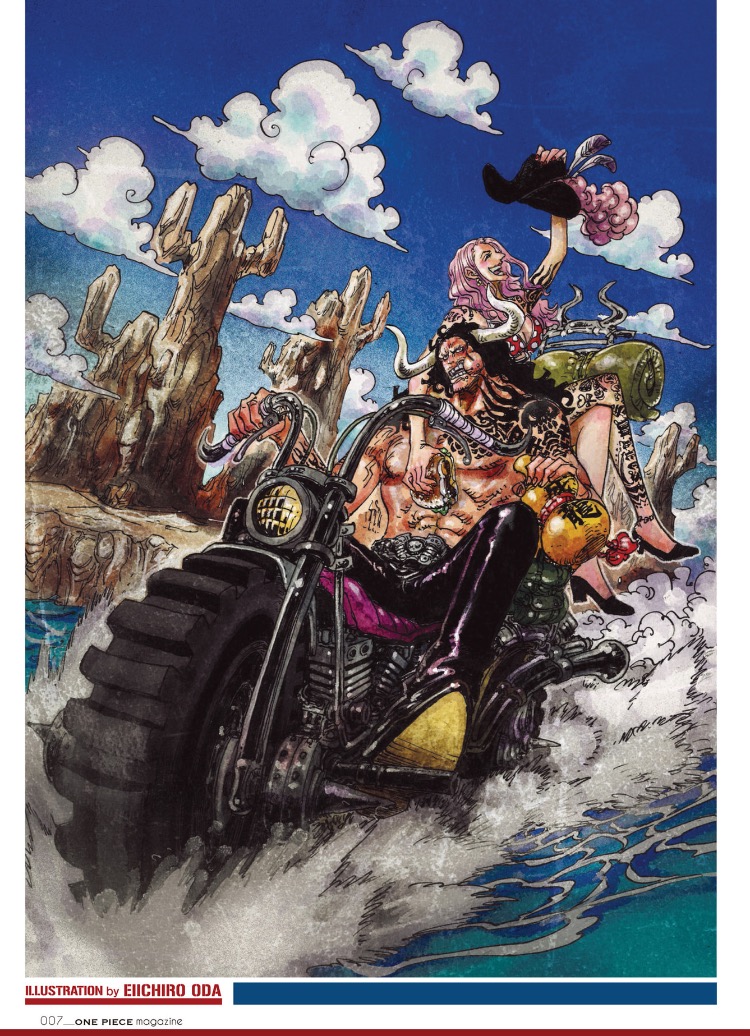 能力者二人が海の上をバイク二人乗り運転者は酒を片手に飲酒運転パッセンジャーは完全にバイクの重心バランスを無視した乗り方で運転者の方も見ずに食べ物を食べさせているという凄まじく海賊的な行為