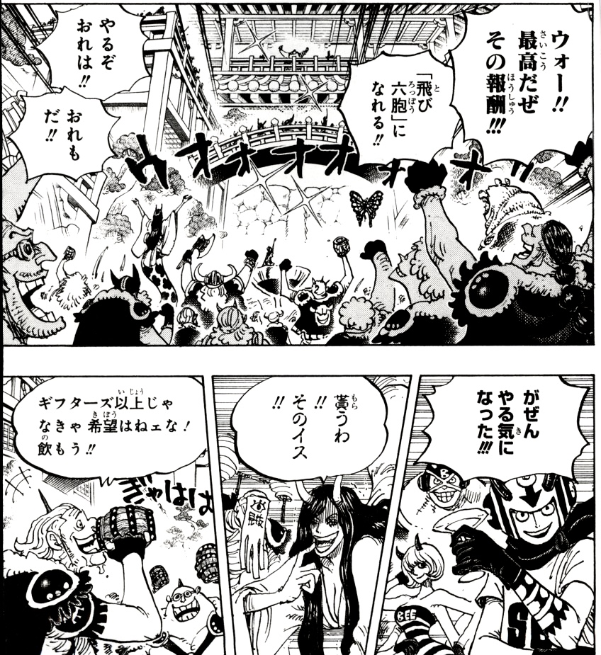 上はジャックがカイドウさんに付いてるし、飛び六方勝つだろうから助っ人に行く意味ないし、キングのカスはカスだしそれは仕方ない