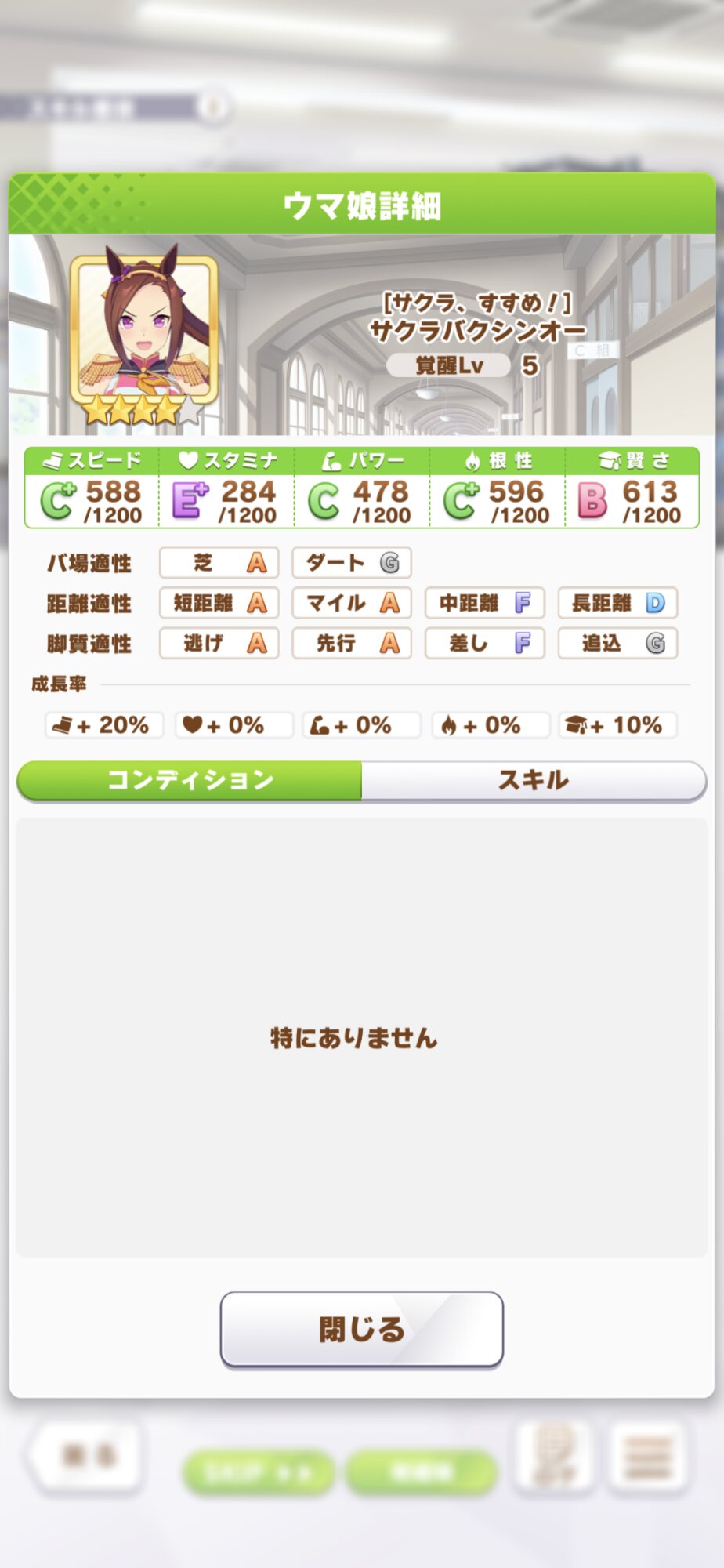 バクシンはスピ20だから根性賢さで充分カンストまで持っていける
