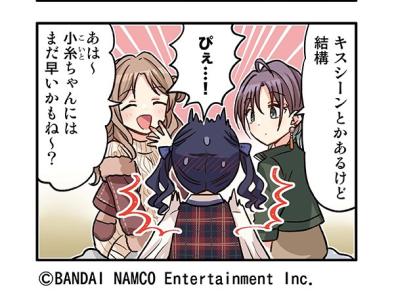 3人の微笑ましい惚気を聞きながら、(昨晩のプロデューサーさん、可愛かったな)と思いを馳せる小糸ちゃん……
