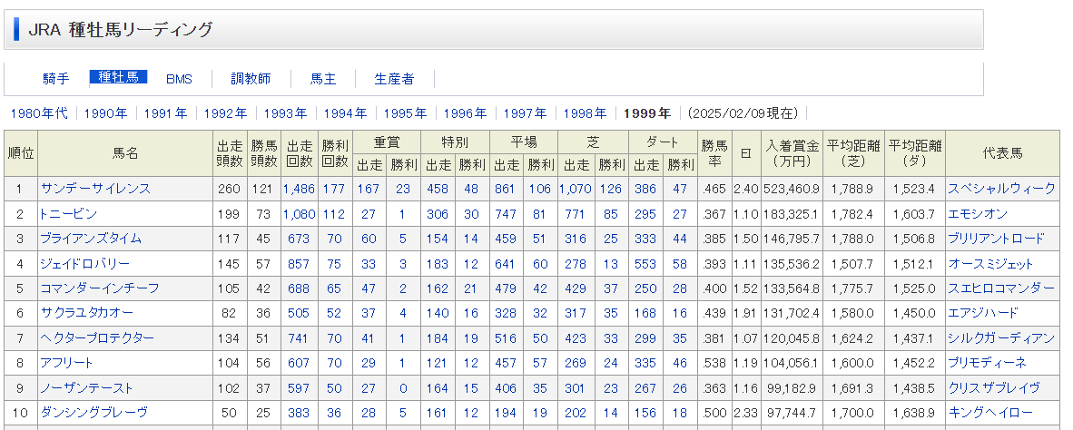 BMSショボいと思ってたロベルト系のリアルシャダイやブライアンズタイムもランキングでは上位に居るし、それより上見たらまあ納得しかないから繁栄してればそれなりにBMSも上に来るよね