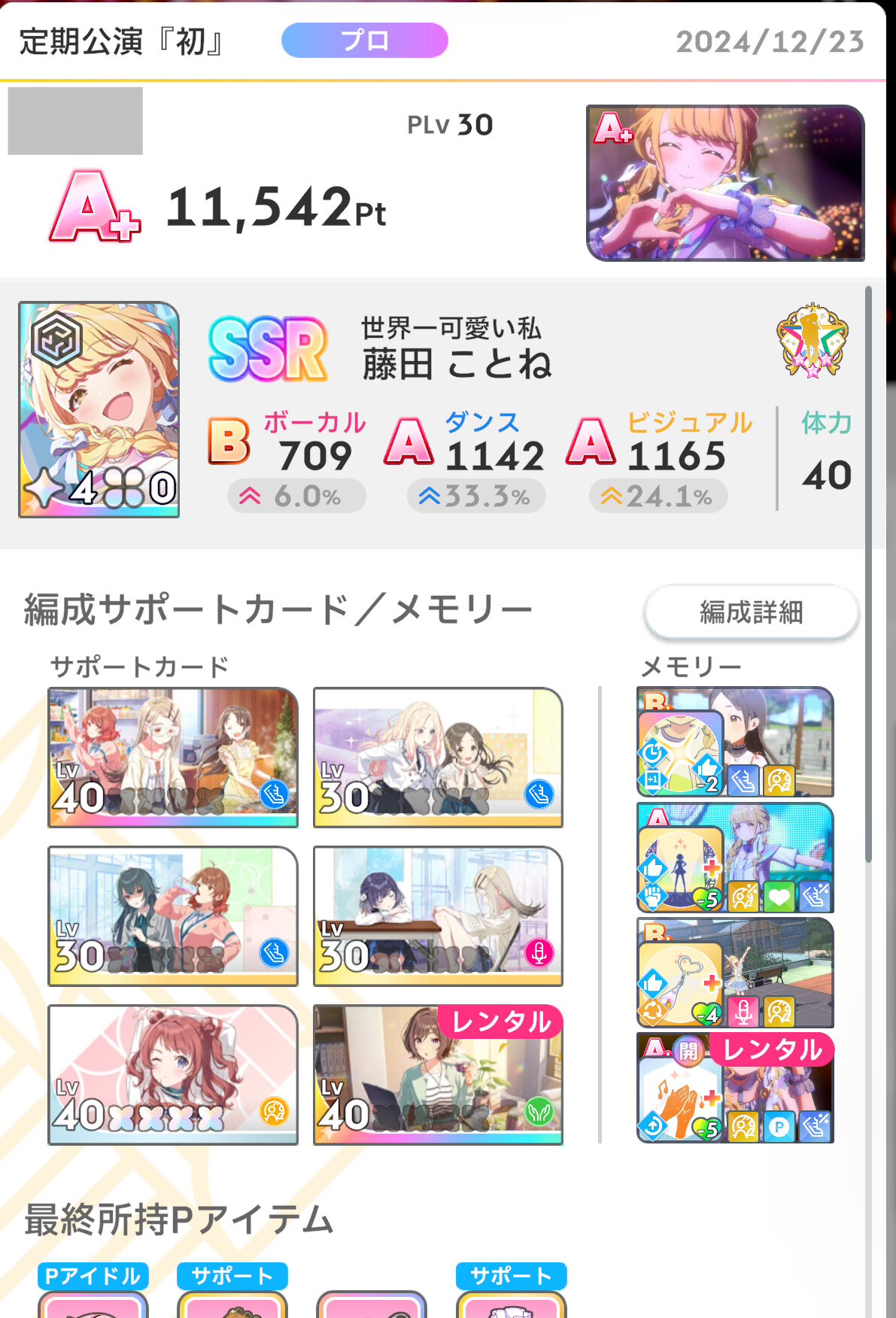 ロジックで体力管理難しいて事はレッスン中のパフェ取れてないとか…?