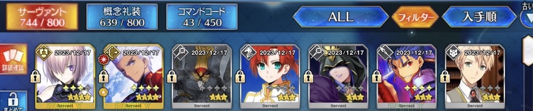 入手順で並べ替えした結果、マシュの隣にはマルタさんがいた