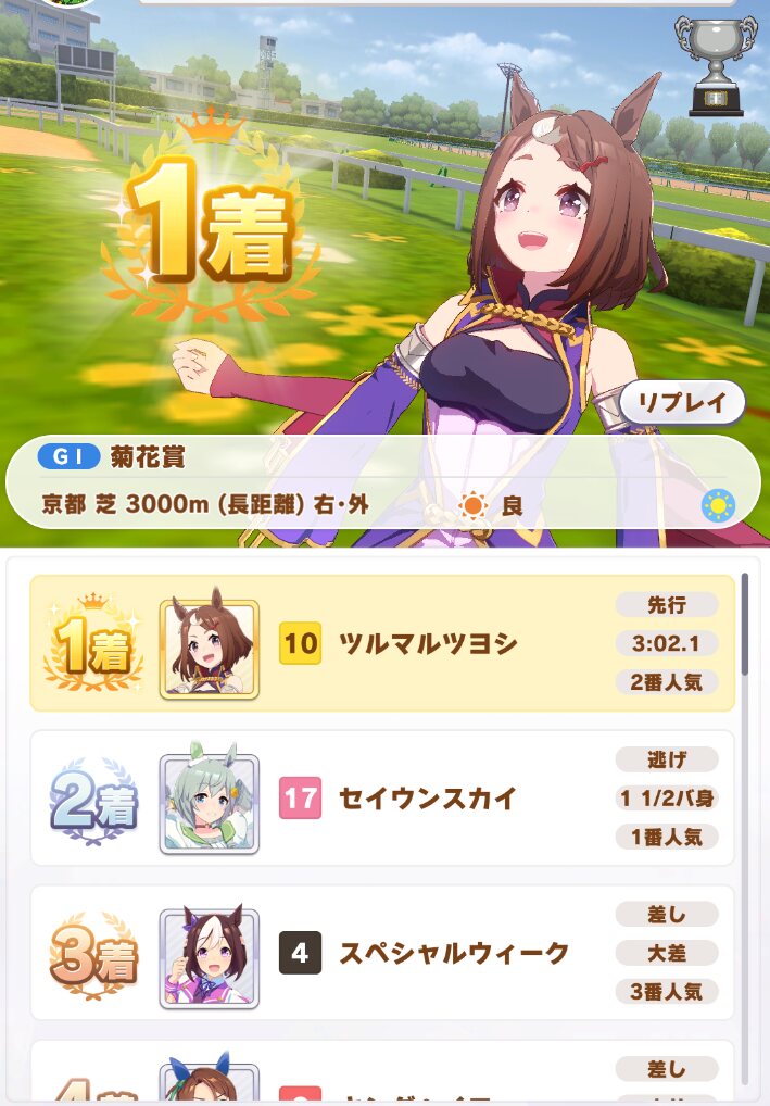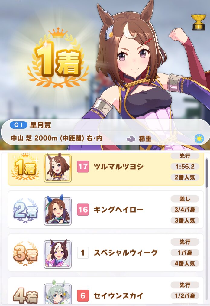 皐月1回目で勝ったから意外と楽じゃんと思ってたら、以降ボロボロだったよ順位もツヨシも