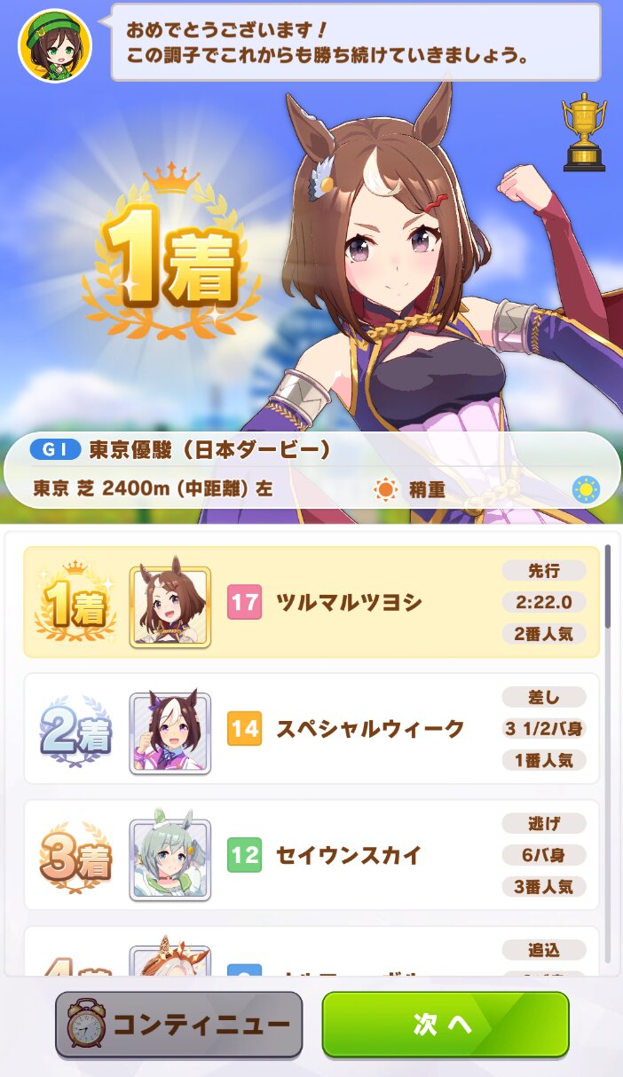 正直シオンよりマシと思う、ツヨシは加速スキル必須のダービー以外結構簡単です