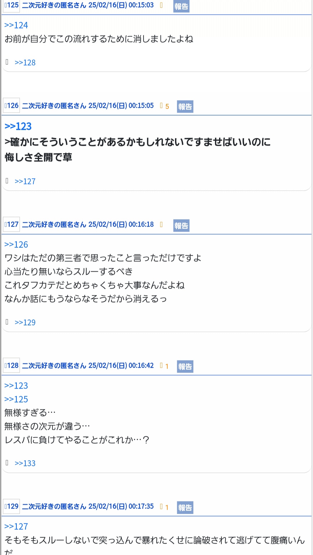 レスバに負けて同じ荒らし仲間のいるところに逃げて愚痴ってたら魚拓晒されてて笑ってしまう - 184二次元好きの匿名さん25/02/16(日) 03:03:18