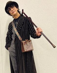 ステッキ、帽子、ループタイ、柄付きコートなどよくみたらジェントルマン的なコーデなんだよな