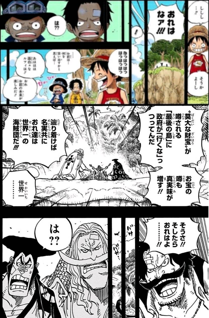 ルフィ(7歳)が兄2人の夢に続いて話したとき、ロジャーが白ひげおでんに話したときは、聞いた側は呆れ・驚きで唖然としていた